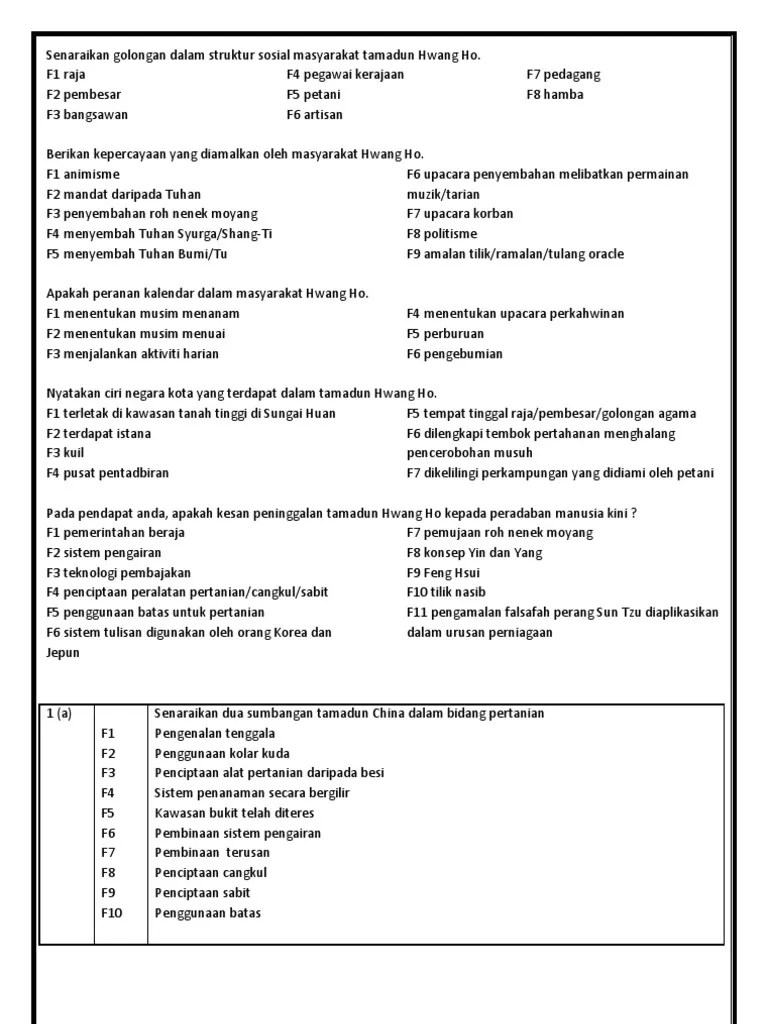 Sejarah tingkatan 1 | kerja kursus sejarah bahagian 3(a) negeri pahang. Sebagaimana telah kita ketahui bahwa masyarakat madani terdiri dari dua kata, yaitu 'masyarakat' dan 'madani'. Ada 20 gudang lagu ciriciri tamadun awal dunia tingkatan 1 terbaru, klik salah satu untuk download lagu mudah dan cepat. Organi sosial raja bangsawan, pembesar dan pegawai. Bandar anyang merupakan negara kota a. Anyang di huang he, ur dan uruk di sungai tigris, memphis di sg nil. Karena itulah ayam jenis ini selalu menjadi primadona bagi para pecinta ayam terutama ayam petarung. Perkembangan petempatan tamadun mesopotamia bermula di sumer(wilayah selatan) wujud antara tahun 3500 s.m hingga 2000 s.m yang terletak diantara lembah sungai tigris. Membawa kepada proses pembahagian masyarakat yang lebih kompleks. You can do the exercises online or download the worksheet as pdf. &iri utama kemunculan <b>tamadun b. Pertambahan penduduk dan kepelbagaian aktiviti ekonomi: Tamadun awal dunia tamadun mesir purba.